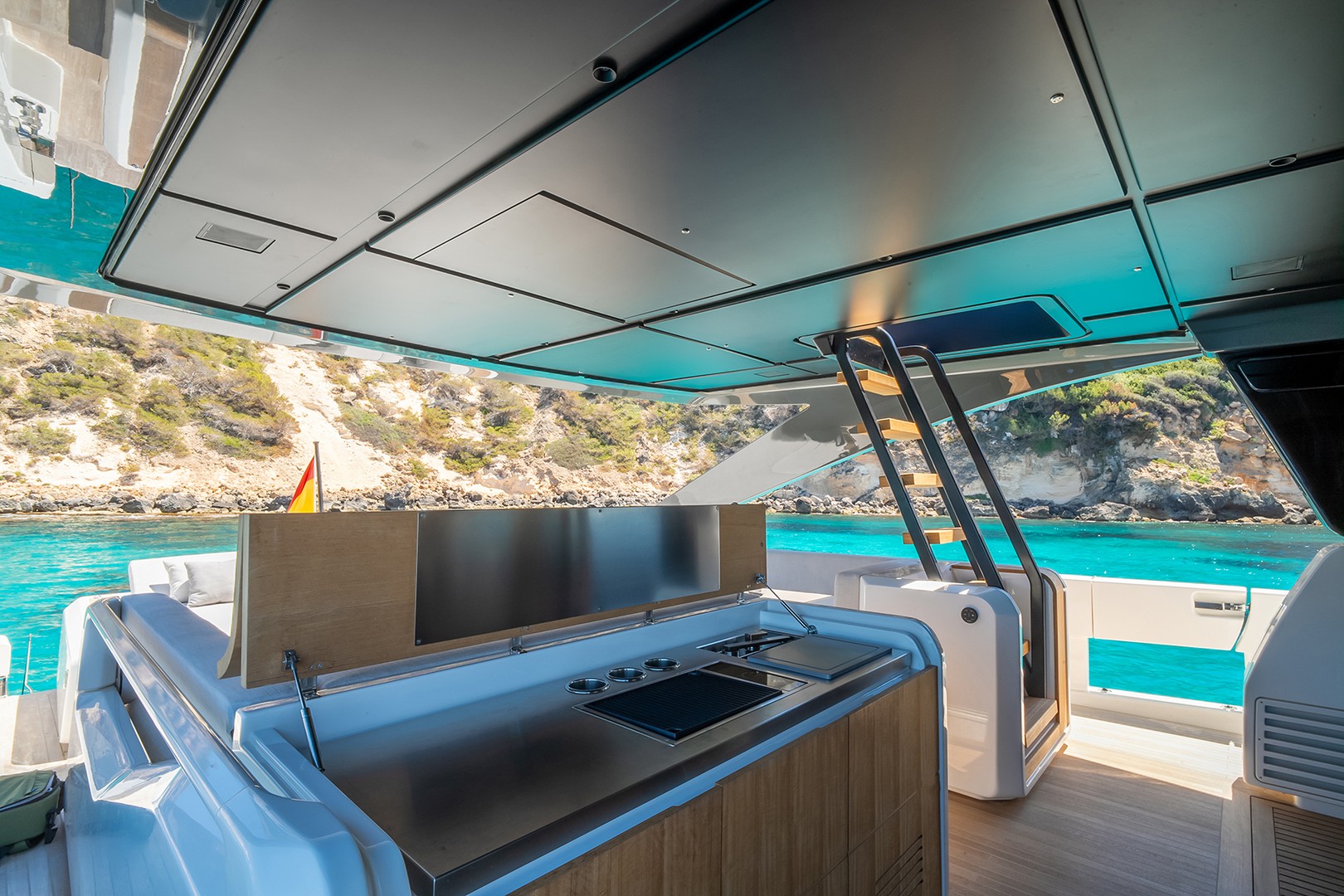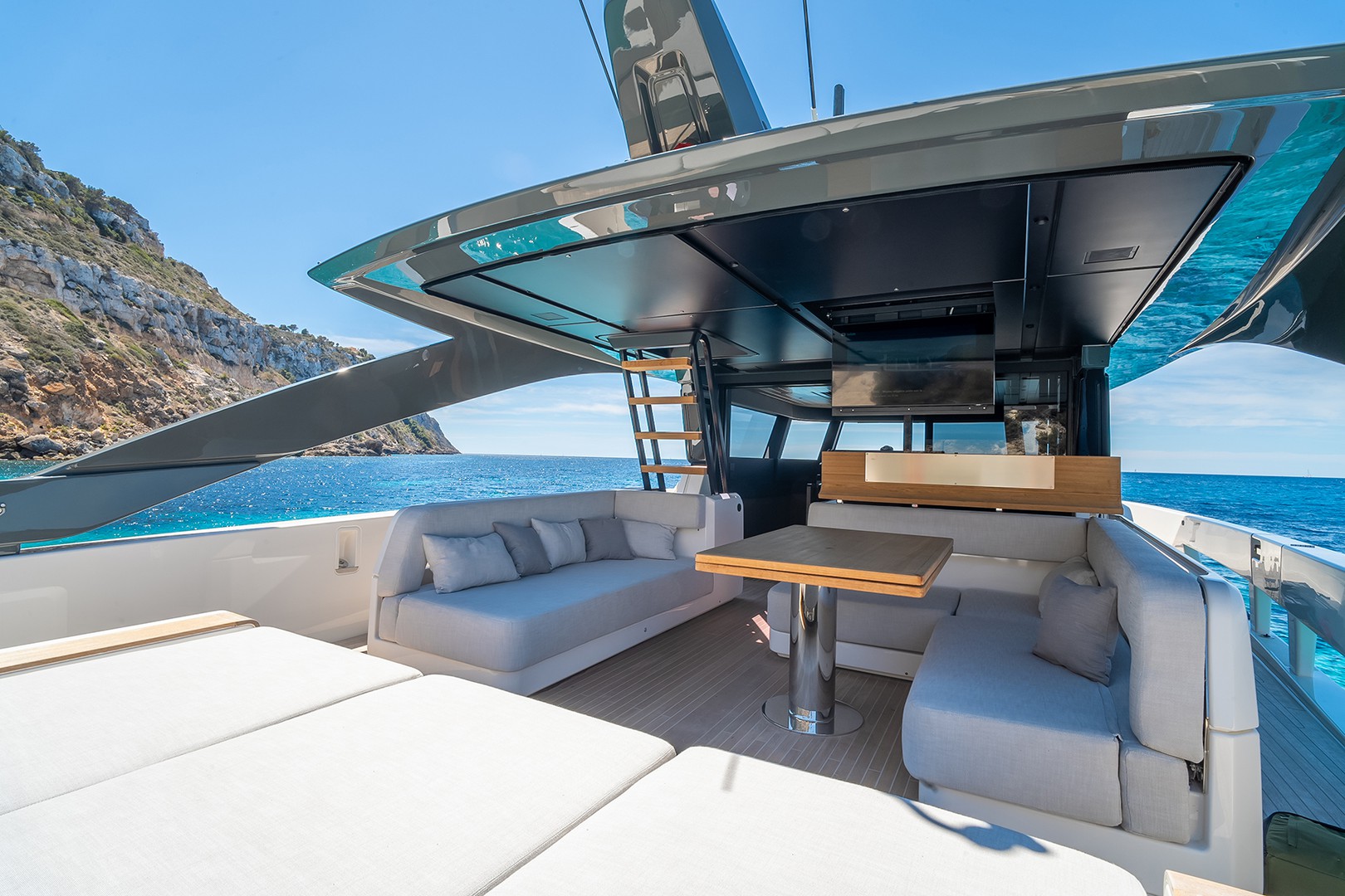 Picture this: champagne on the sundeck, shaded from the afternoon sun. Al fresco dining with the sea as your soundtrack. Lounging on the foredeck while the crew crafts your next cocktail. PETICHET’s smart, flowing layout invites you to move freely, live boldly, and unwind completely.