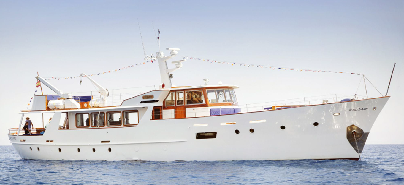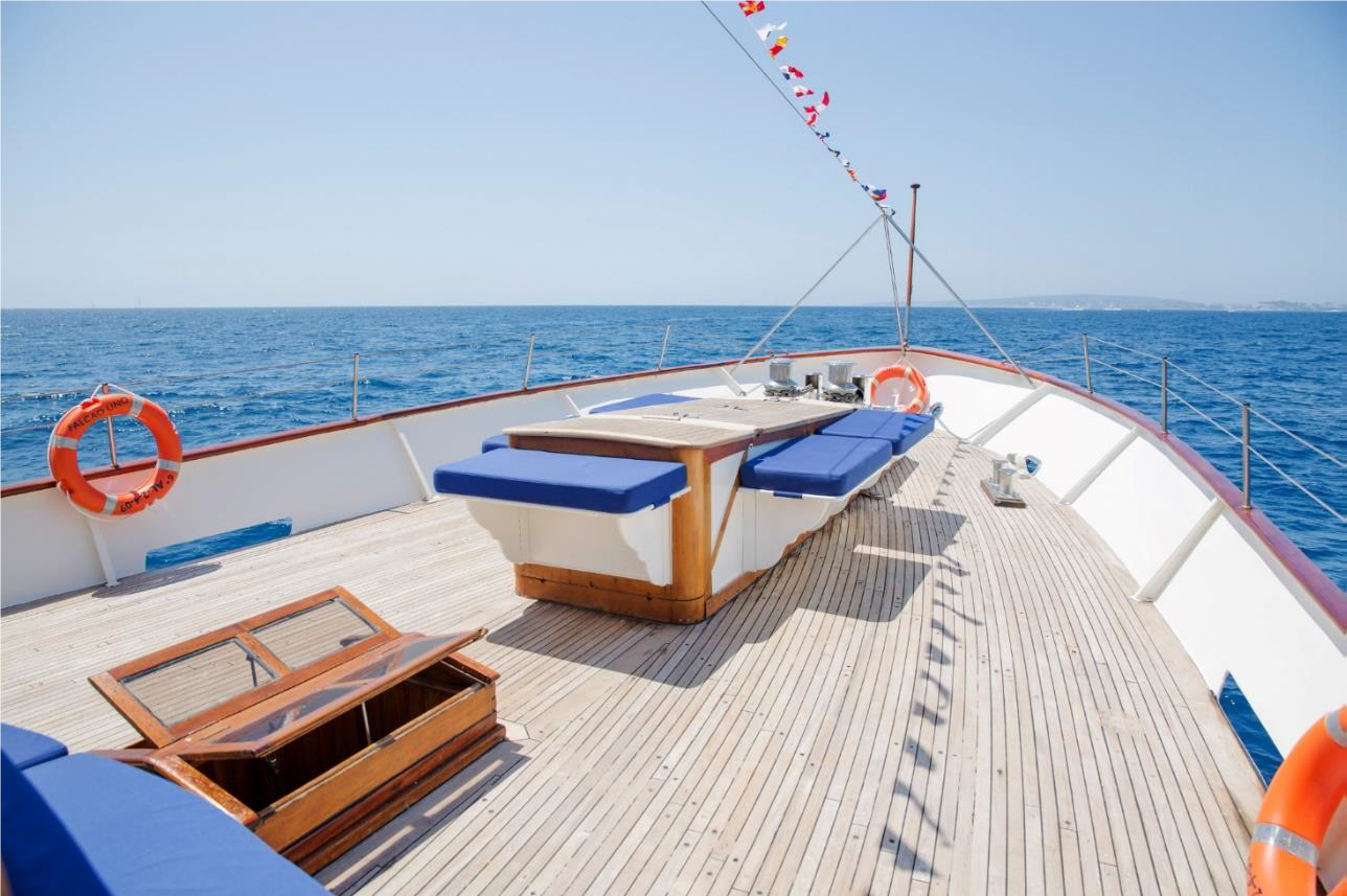 She accommodates up to 65 people on board, excluding staff. It offers a unique experience, with a fantastic food and drink option, DJ and water sports. Its luxurious construction and design is visible just by looking at the cabins and the decks, 24 meters long, with classic construction lines, this yacht is a truly exceptional and unique ship and has taken part in several of the Monaco Classics. The price includes: Crew, fuel, welcome drink and welcome snack, water and sodas. Towel service also included.