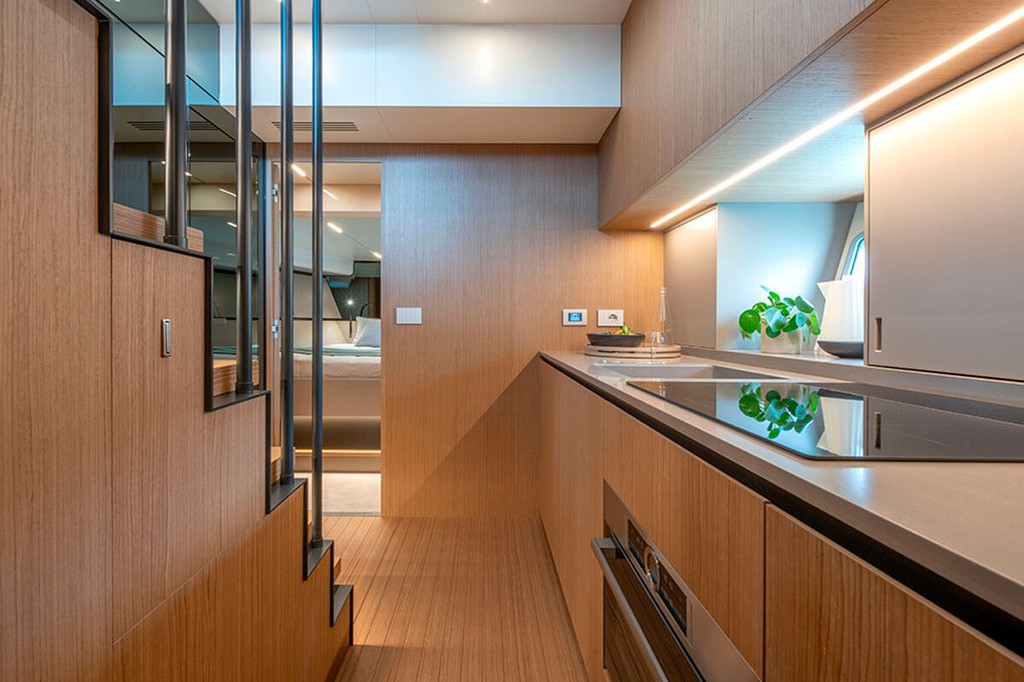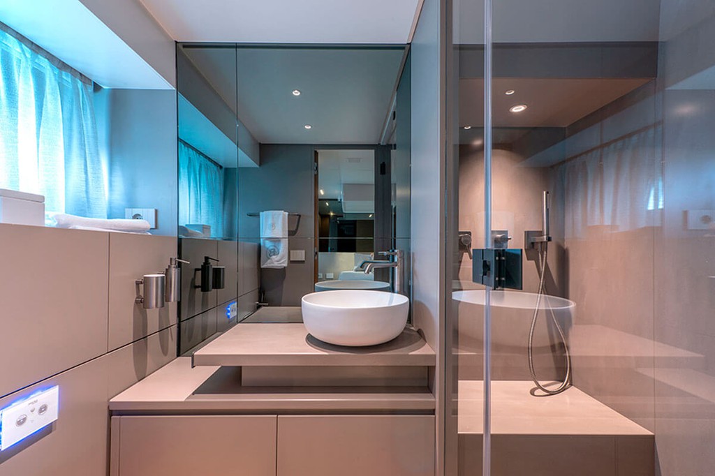 El Bluegame 54 representa un diseño revolucionario en el mundo de los yates premium, integrando soluciones vanguardistas para maximizar la funcionalidad, el confort y el rendimiento en un formato compacto pero espacioso. En términos de distribución, el Bluegame 54 destaca por su plataforma de baño hidráulica, que facilita el acceso al agua, y pasillos amplios tipo walkaround que permiten una circulación segura y sin obstáculos desde la proa hasta la popa. Además, su diseño enfocado en maximizar el espacio, hace que el Bluegame 54 sea ideal tanto para escapadas cortas como para largas travesías.